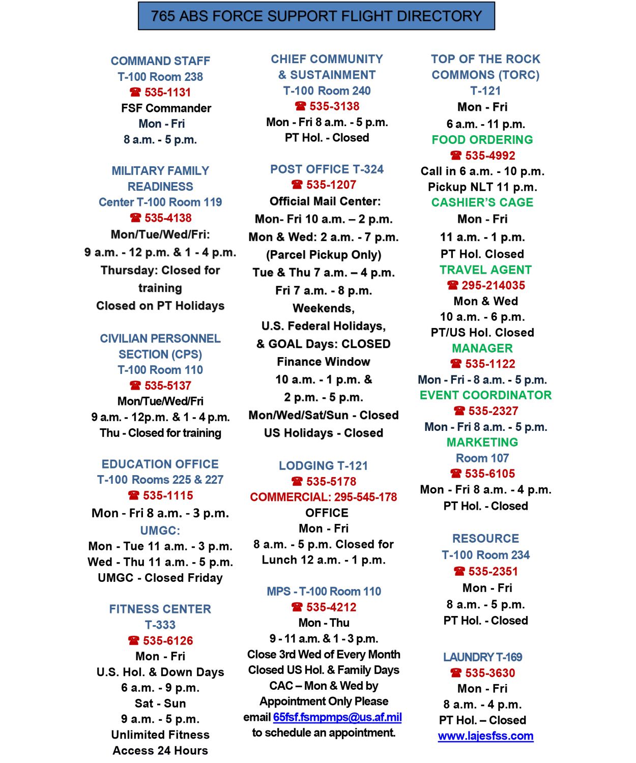 | Hours of Operation | Contact Information | |