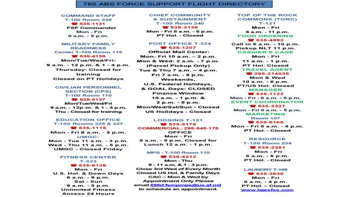 Force Support Facility Hours